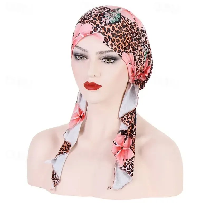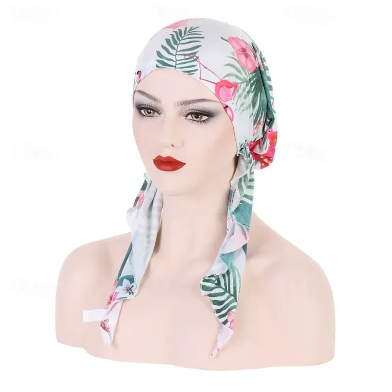 Women Printed Pre-tie Headscarf Elastic Muslim Female Turban Soft Hat Hair Loss Cover Head Wrap Headwear Stretch Bandana 2025